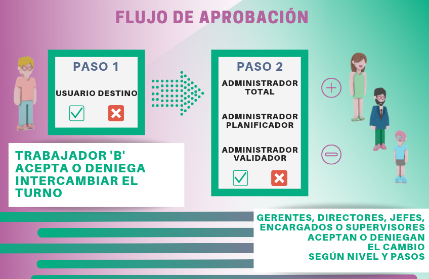 Podemos personalizar para que la aprobación de ese cambio de turno se realice en uno o más pasos.